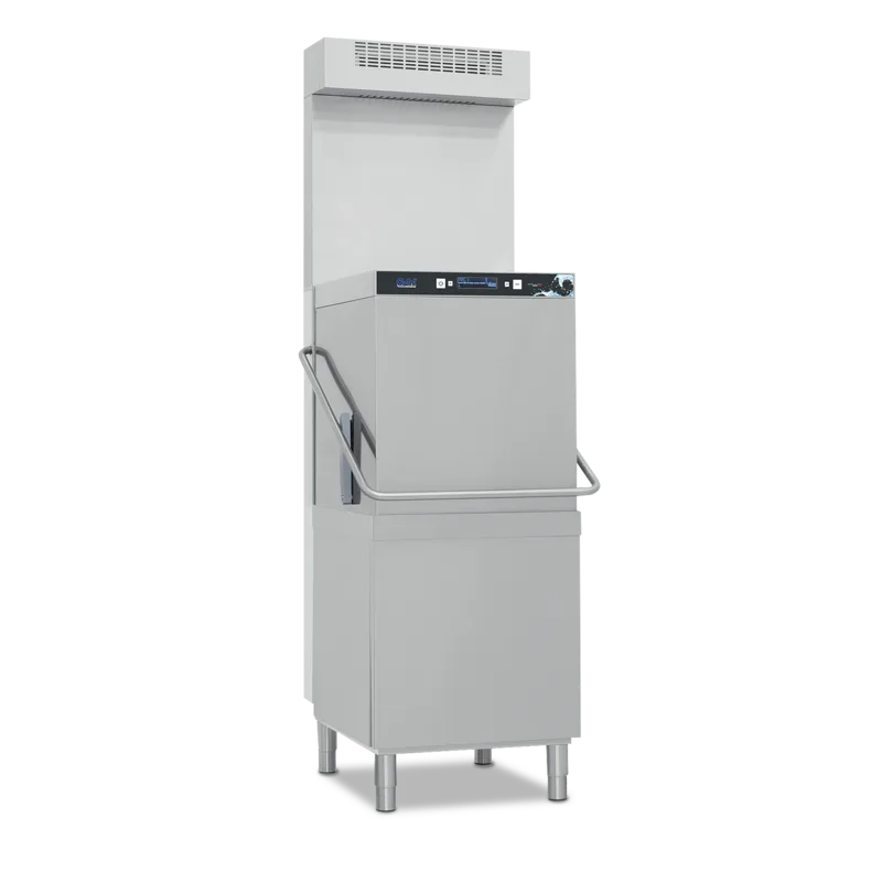 Profesionalni dvižni pomivalni stroj Minerva Omega RGH50BTPHR z vgrajeno napo je idealna rešitev za kuhinje z večjimi obremenitvami, kjer je ključna hitrost, ergonomija in nadzor nad paro. Integrirana napa omogoča odvod vlage in toplote brez potrebe po dodatnem prezračevalnem sistemu, kar poenostavi montažo in izboljša delovno okolje.