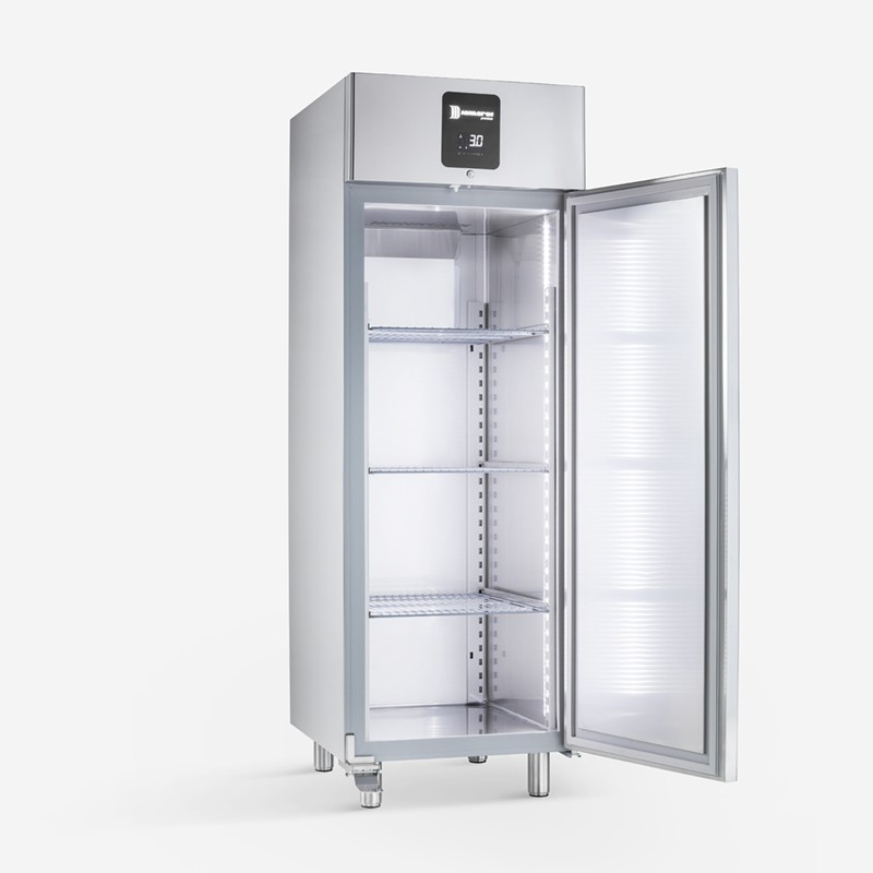 Samaref PM 700 P BT je visokozmogljiv zamrzovalnik, zasnovan za profesionalno uporabo v gostinstvu, kjer sta zanesljivost in energijska učinkovitost ključnega pomena. S skupno bruto prostornino 630 litrov in temperaturnim območjem od -15 °C do -22 °C zagotavlja optimalne pogoje za shranjevanje zamrznjenih živil tudi v najzahtevnejših okoljih z do 43 °C.