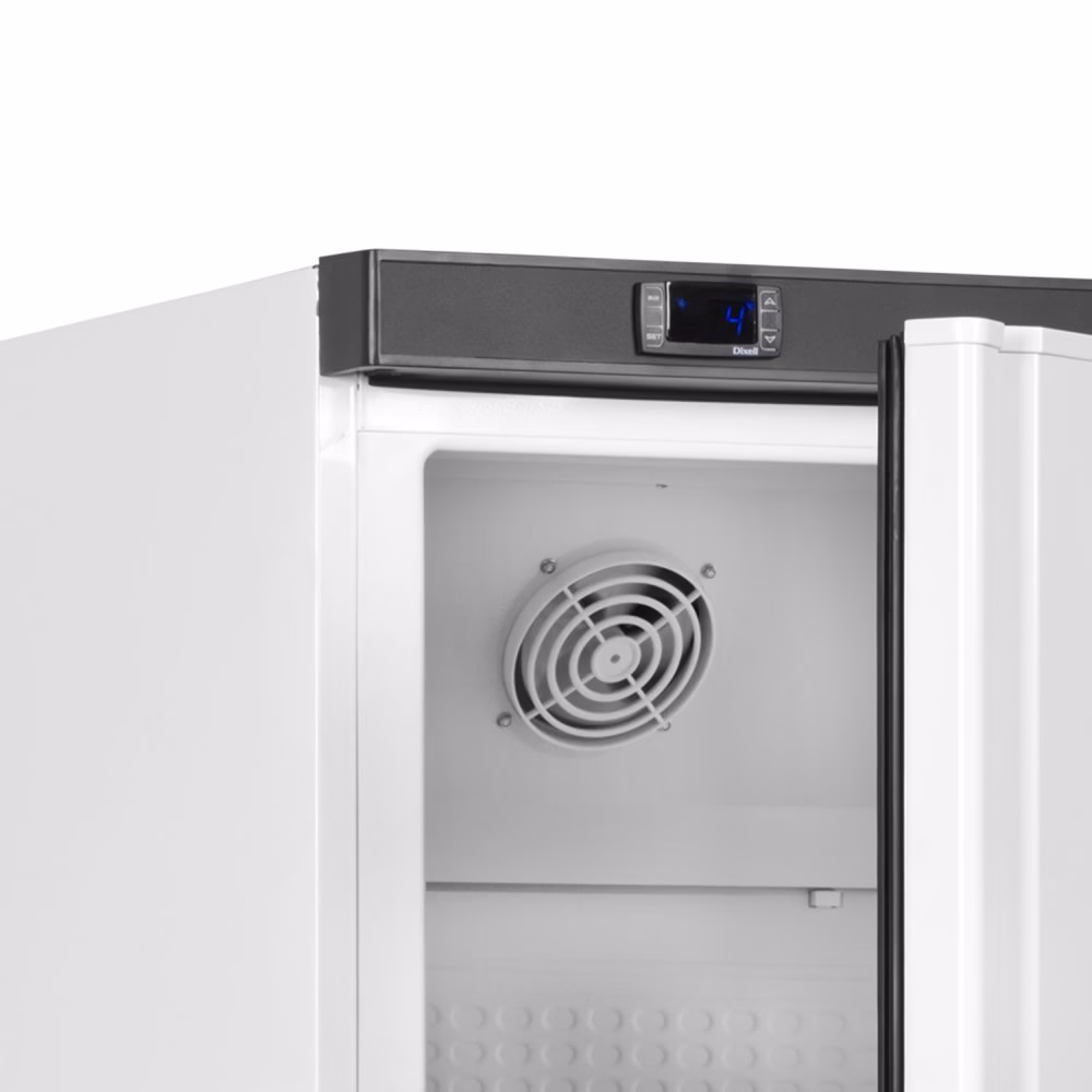 Serija hladilnikov UR-G je različica naših omar serije UR z belimi vrati. Te hladilne vitrine so na voljo v različnih velikostih, obrnljiva steklena vrata pa omogočajo odlično vidljivost izdelkov. Hladilnik ima nastavljive police, da boste omaro zlahka prilagodili glede na svoje potrebe. Sistem hlajenja z ventilatorjem zagotavlja stabilno temperaturo po vsej omari, kar lahko enostavno nadzorujete z elektronskim termostatom.