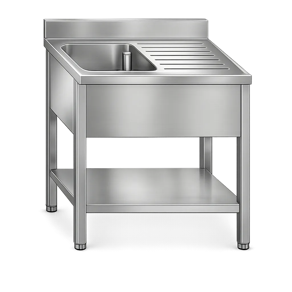 Profesionalno inox pomivalno korito, zasnovano za večje delovne obremenitve v profesionalnih kuhinjah. Robustna izvedba, več dimenzijskih opcij in možnost prilagoditev omogočajo optimalno integracijo v vsak delovni proces.