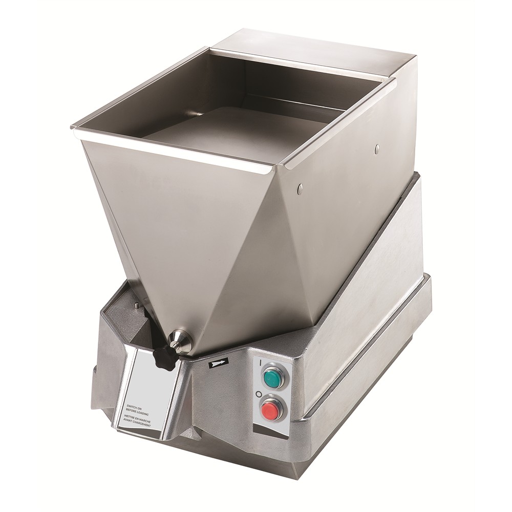 Visoko zmogljiv rezalnik krompirja z avtomatskim podajalnikom – zmogljivost do 1500 kg/uro / 25 kg/min.