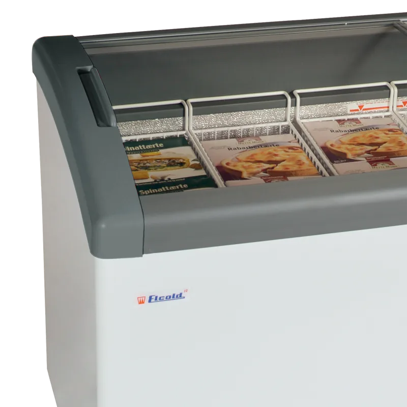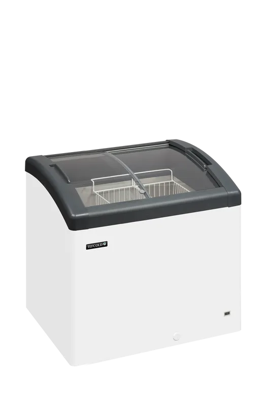 Zamrzovalna skrinja z ukrivljenimi drsnimi steklenimi pokrovi