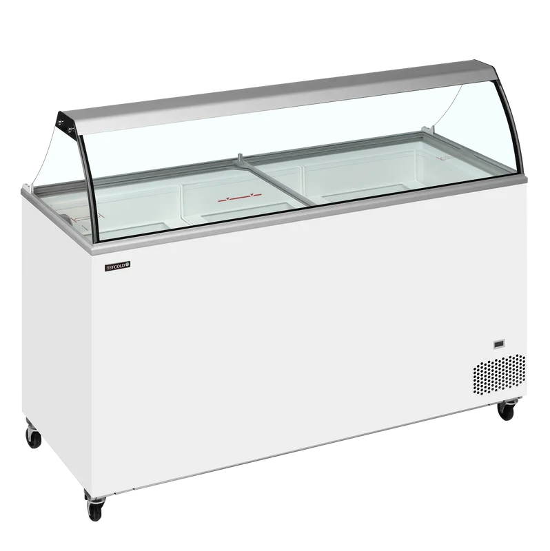 Zamrzovalniki za sladoled serije IC-SO ponujajo odlično kakovost po konkurenčni ceni. Model vključuje ravne drsne pokrove, ki olajšajo dostop do sladoleda za postrežbo in pomagajo izolirati enoto, ko ni v uporabi. Ta serija omogoča postrežbo nad stekleno površino in je idealna za znamčenje, s čimer enota in njena zamrznjena vsebina pritegneta več pozornosti. Zamrzovalnik je optimiziran za košare, ki so primerne za 5-litrske plastične posode na zgornjem delu, spodaj pa se nahaja prostor za shranjevanje.