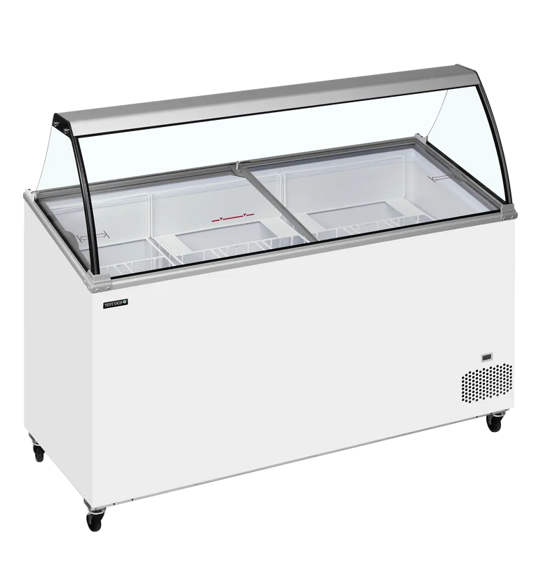 Zamrzovalniki za sladoled serije IC-SO ponujajo odlično kakovost po konkurenčni ceni. Model vključuje ravne drsne pokrove, ki olajšajo dostop do sladoleda za postrežbo in pomagajo izolirati enoto, ko ni v uporabi. Ta serija omogoča postrežbo nad stekleno površino in je idealna za znamčenje, s čimer enota in njena zamrznjena vsebina pritegneta več pozornosti. Zamrzovalnik je optimiziran za košare, ki so primerne za 5-litrske plastične posode na zgornjem delu, spodaj pa se nahaja prostor za shranjevanje.