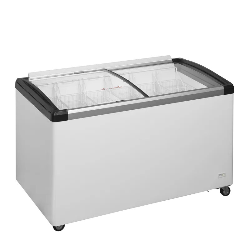 Serija zamrzovalnikov sladoleda IDB je trdno izdelana z aluminijastim okvirjem na sprednji in zadnji strani. Rahlo ukrivljeni stekleni drsni pokrovi so opremljeni s trdnimi ročaji, ki služijo tudi kot konca zgornjega okvira, tako da zamrzovalnik lepo zapirajo in preprečujejo vstopanje in izstopanje zraka. Na sprednji strani ima odlično LED-osvetlitev za osvetljevanje zamrznjenih izdelkov, priložen pa je tudi komplet košar.