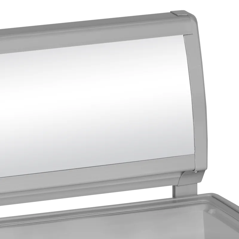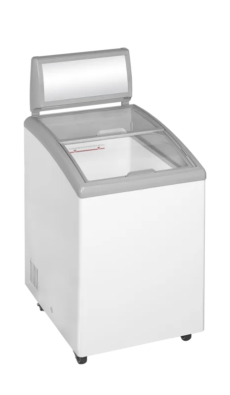 Prefinjena zamrzovalna skrinja z ukrivljenim drsnim steklenim pokrovom