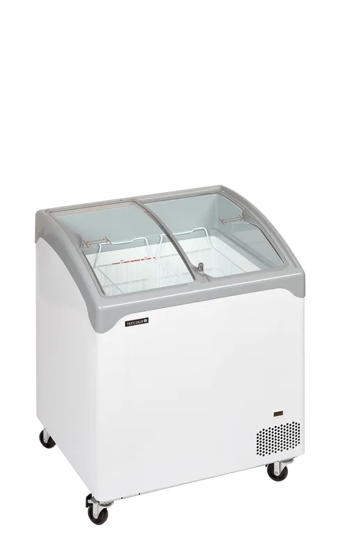 Prefinjena zamrzovalna skrinja z ukrivljenim drsnim steklenim pokrovom
